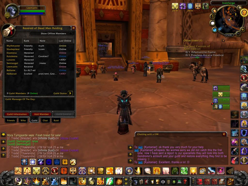 We have popped TL up to a guild leader rank incase such a thing happens again. Giving him the power to remove officers in an emergency. I'm starting to get the stuff back into the bank so it's just a case of Gond getting his account back and it should all be done and dusted