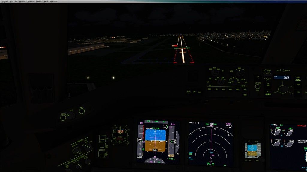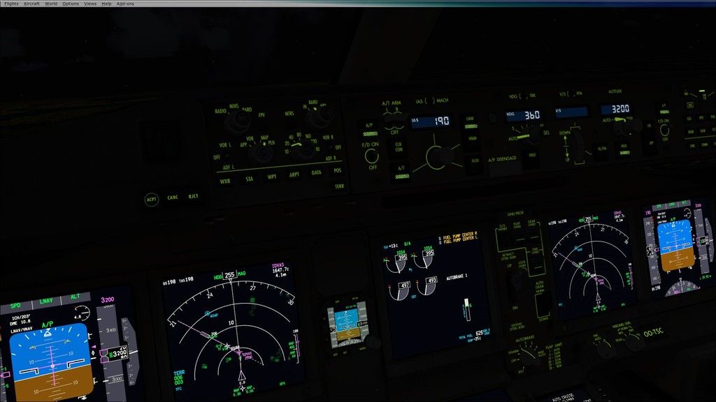 My flight is currently in progress.   I took off earlier this morning and am currently cruising at FL300, which is the first cruise altitude on the planned step climb up to a final FL390 cruise for the last part of the route (once I have burnt off enough fuel to get up there that is!).   I used ALL of the runway and flaps 20 to get off the ground at LIML, it's a very full load and the best part of 12 hours in the air to get there in one go.   Time accel is ON.  Pictures to follow.