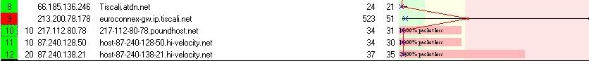 After a quick look at ping plotter I'm getting the same kind of pings as hippy from the same ip hop thingy & hlsw showing bad spikes at the same place too.