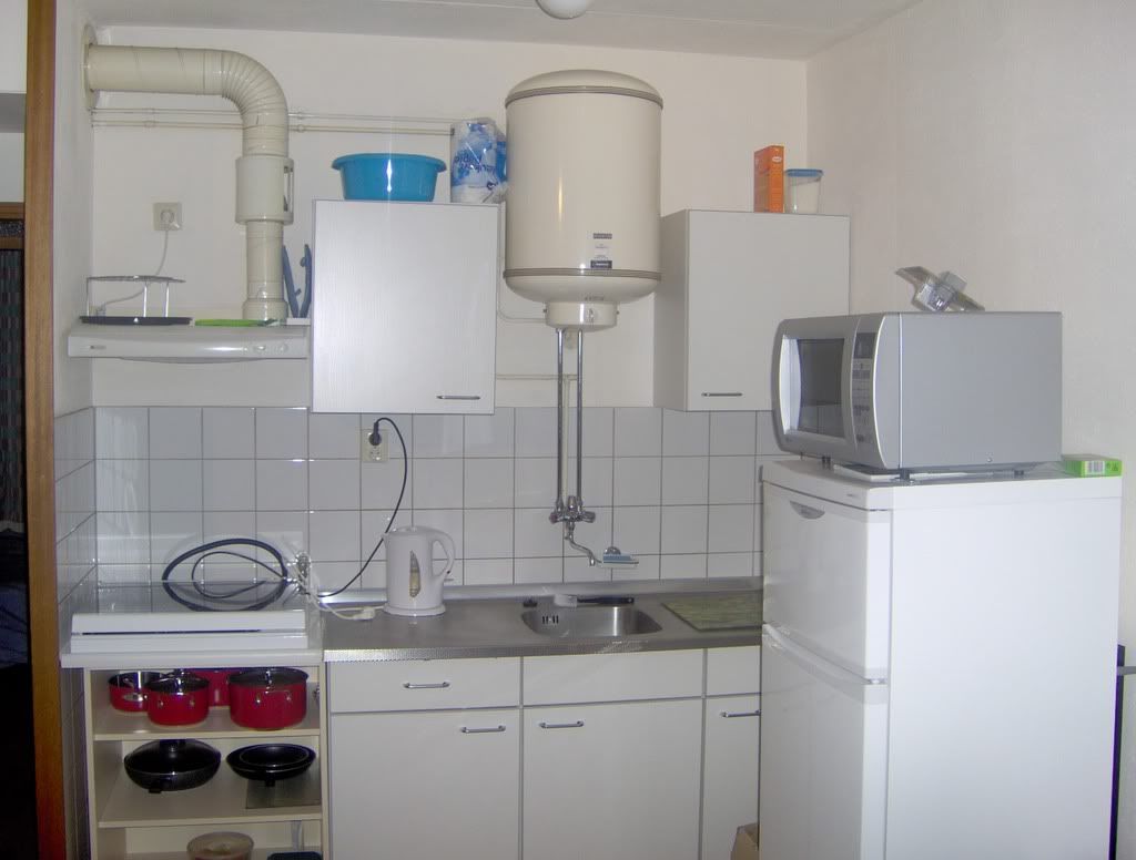 you can also move up a bit the cabinets near the hot water thingy, so its more spacious and you dont hit your head that much, or add more cabinets on them, then cover up the hot water thingy, and you have the space on top for some ornaments / plants etc