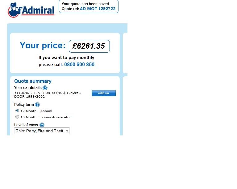 Also, tried putting my mum as the named driver and me as a +1 still came out roughly the same, I think the insurance companies have cottonened on to these "loop holes" i'll try another site