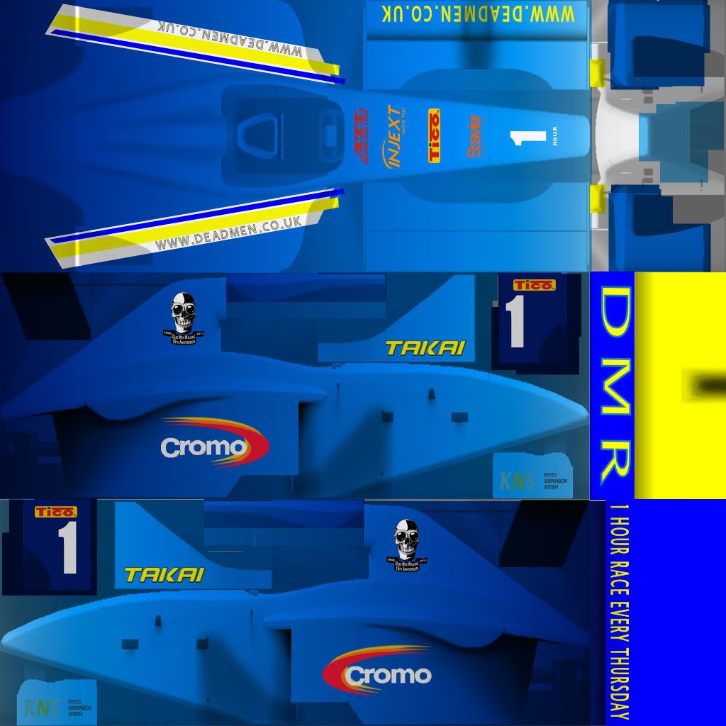 Nice one Rob :thumb: blue and yellow are our colours so should be in the mix and the website address www.deadmen.co.uk somewhere noticeable on each car, other than that feel free to indulge your artistic bent :D.