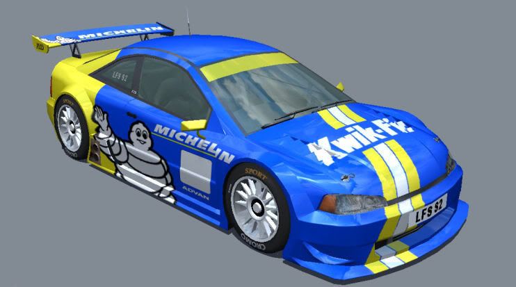 whether I can make individual ones rather than a general team skin per car is something I've still to work out. It may be something that comes later. I'm assuming the blue and yellow colour scheme will have to stay? If anyone has any suggestions for colours, or designs on real race cars that they feel would be a good base for the skins please let me know. Below are a few shots of some skins that I have done so that you have an idea of my (sometimes limited) abilities!