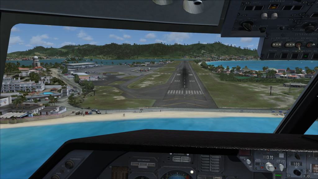This will be fun as TNCM has no ILS, just a VOR beacon.   So it's VFR landing and you're over water all the way until the start of the runway - and more water at the other end if you're touching down too far along the runway or can't stop!