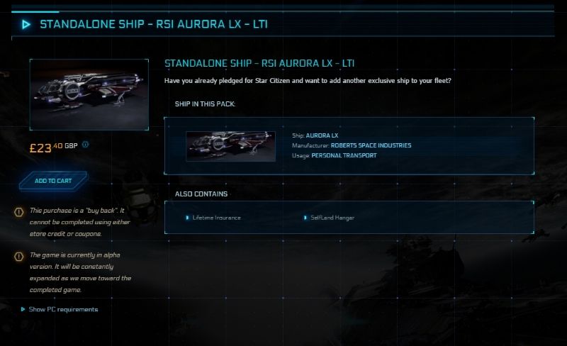 I have a bunch of LTI Ships and Packages available on my account as "Buybacks" if anyone is interested ? Not looking to make a profit here or anything (Though i wouldn't turn down a tip :D), just offering people the chance to pick up some ships with LTI that are no longer available. As you may or may not be aware Buybacks can only be bought with real money, not store credit, so if anyone is interested i will send a screenshot of the exact package/ship which shows the price i would have to pay, and all i'd ask is that amount via Paypal plus whatever Paypal fees are applicable.