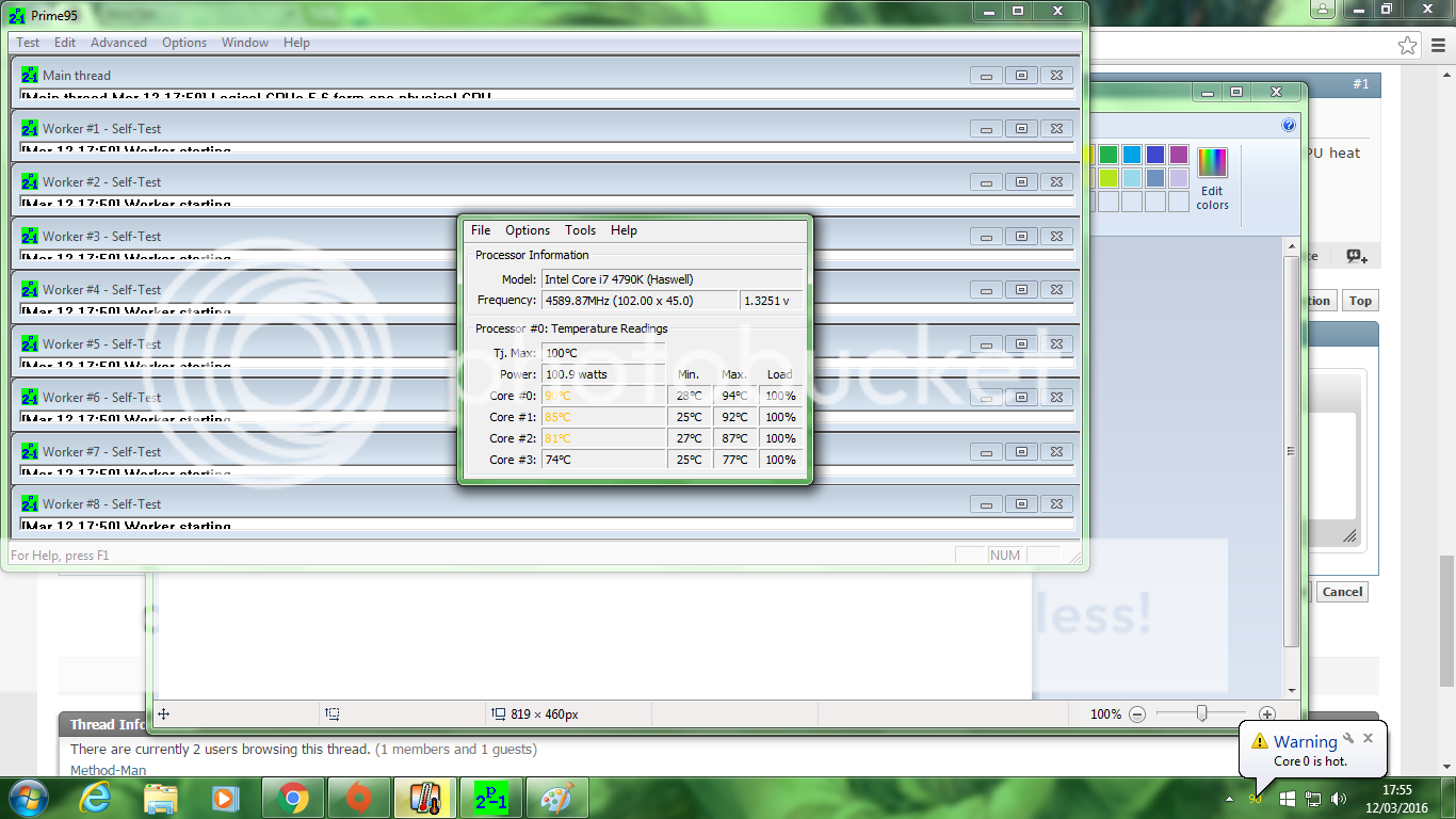 TL and I both have the 4770k, runs a few mhz slower than the 4790k. We have both de-lidded our CPUs to clean out the useless gunk intel use to transfer heat from the CPU die to the heatspreader, replacing it with better quality material. After that, and with a H100i, my CPU gets to around 75 as a maximum.