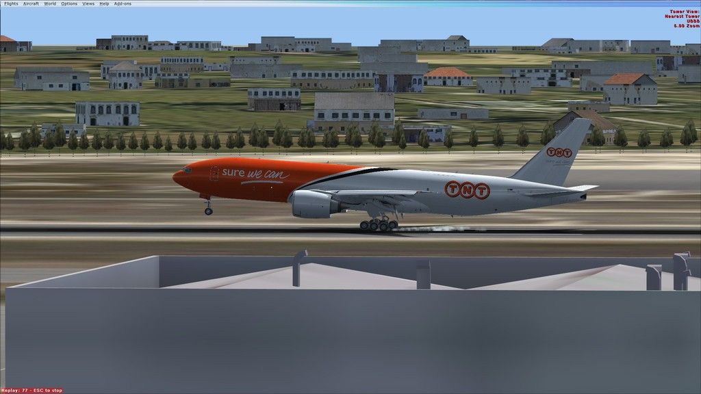 On final approach to UBBB airport.   I'm loving the graphics in P3D, look at the football field below!